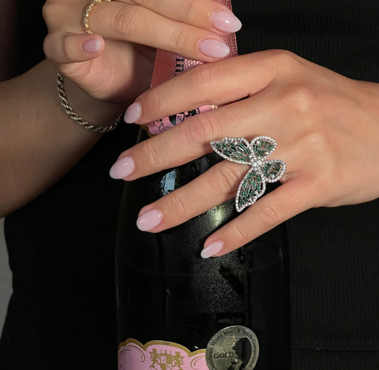 Emerald butterfly ring